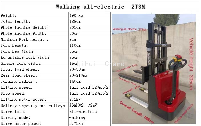 Walking all-electric stacker, with a maximum rated load of 1500kg. The overall appearance is exquisite, flexible and convenient to operate, economical and practical, energy-saving and environmentally friendly, and cost-effective. It is suitable for low-frequency, low-intensity, short-distance handling and stacking conditions, and can meet the needs of most enterprise users for cargo handling and stacking. ( Charging voltage 220V/110V optional)