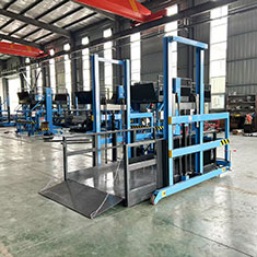 The mobile loading and unloading platform is a cargo loading and unloading auxiliary equipment that is plug-in and used to operate with the forklift. It is mobile. The platform can be customizable, with a load of 2 tons and 3 tons. The height can be adjusted according to the height of the car carriage. The forklift can directly drive into the interior of the carriage for batch loading and unloading of goods through this equipment. It only requires single-person operation to realize the rapid loading and&